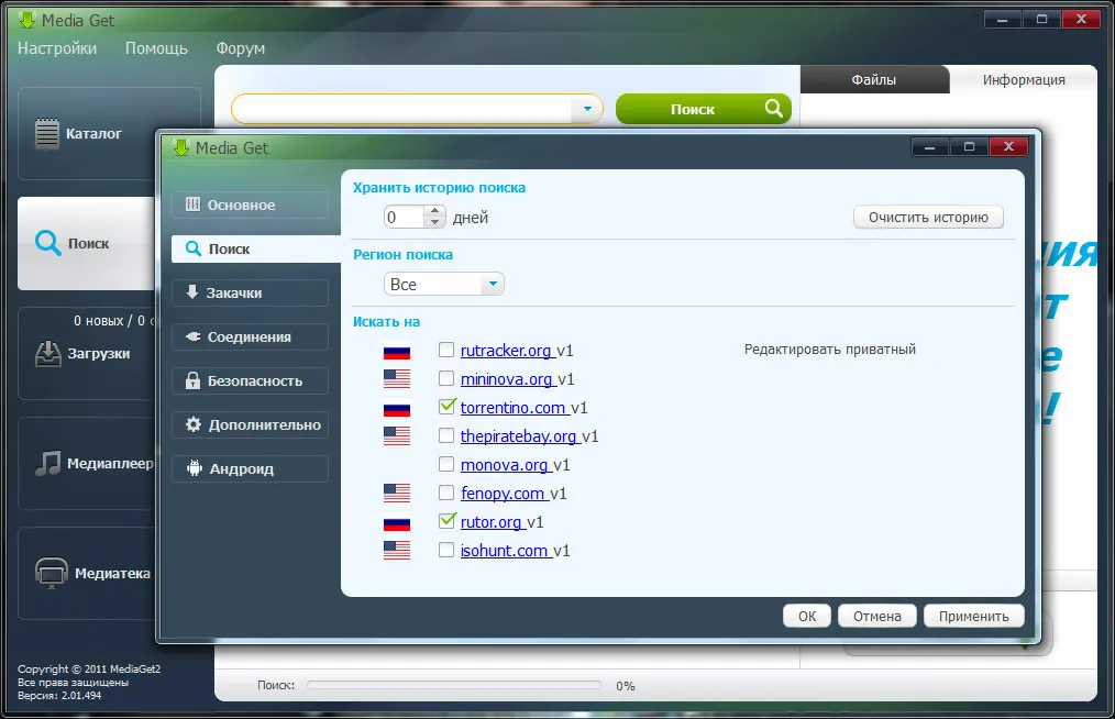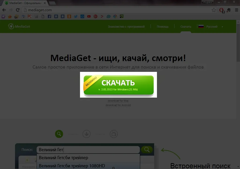 MediaGet — это особая разновидность BitTorrent клиента, который служит для быстрого поиска и скачивания файлов с торрент-треккеров. Безопасен и прост в использовании, позволяет сохранять конфиденциальность в сети, поддерживает работу через прокси-сервер и под VPN.