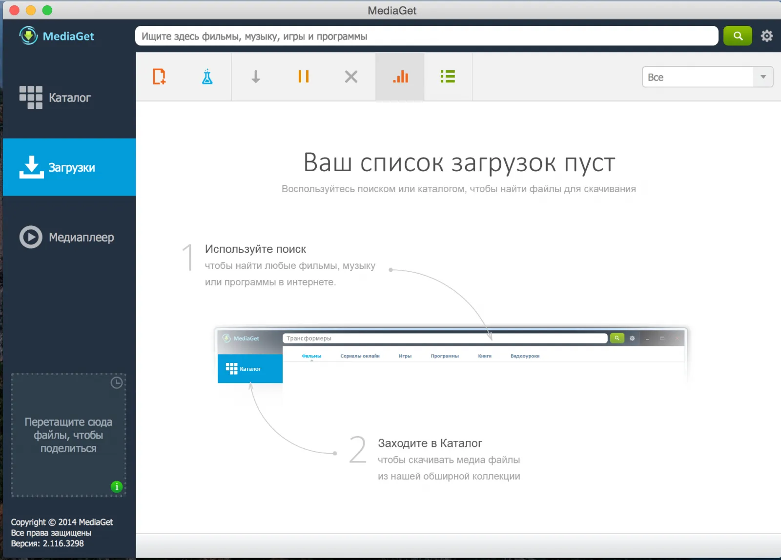 MediaGet — бесплатная программа, работающая по принципу торрент-клиента и обеспечивающая скачивание файлов любого типа на высокой скорости.